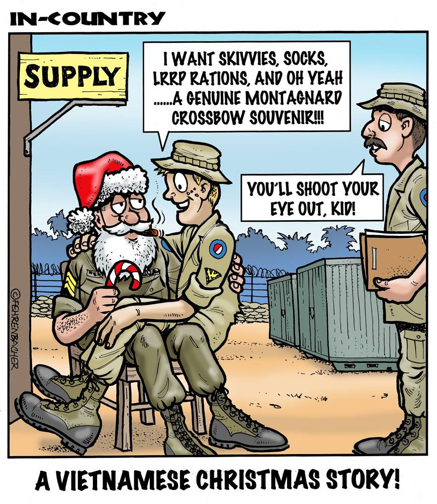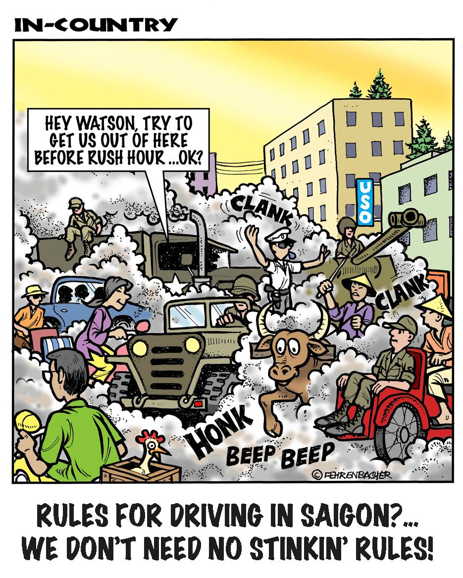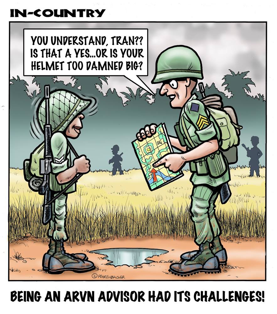 Phil enlisted in the Army in 1965 where he served for years in Vietnam.  He became a graphic designer and has worked for the state of Oregon for 26 years.  He retired in 2003 and started the Cartoon "In-Country".  The cartoons reflect his experiences during his tour of duty in South Vietnam.